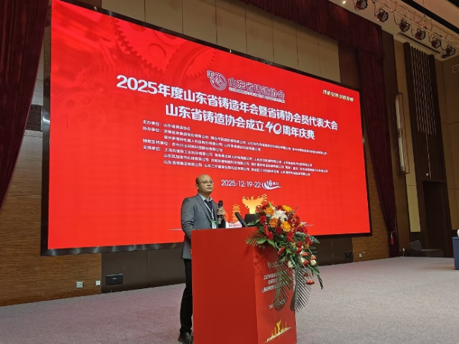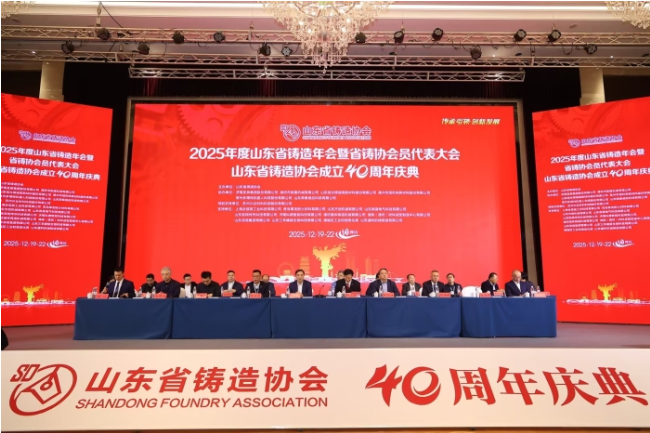 2025年12月19日至22日,由山东省铸造协会主办的“2025年度山东省铸造年会暨省铸协会员代表大会”在山东潍坊隆重召开,同期隆重举行山东省铸造协会成立四十周年庆典。本次年会以“传承引领创新发展”为主题,汇聚行业专家、企业代表与学者共话铸造行业未来。玫德集团作为行业领军企业深度参与盛会,旗下济南科德智能科技有限公司作为大会支持单位亮相。