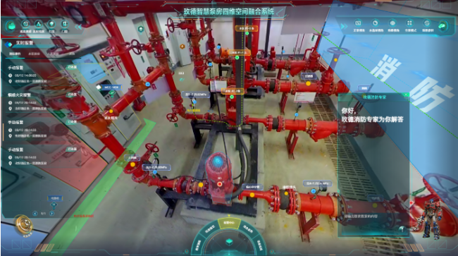 在此背景下,玫德集团依托其在管道阀门领域数十年的制造经验与技术积累,以智慧泵房场景为切口,通过融合高斯建模、AI多模态解析、720°全景成像、AR增强现实与智能化技术,创新打造了智慧消防水灭火系统。该系统通过对消防水系统进行全时态、全要素的数字化监控与智能调控,实现了从水源、泵房、管网到末端装置的全程可视化、故障预警自动化与运维管理协同化,彻底解决了传统消防水系统“看不见、管不住、调不准”的痛点,为现代城市与工业安全构建了可靠、高效、智慧的消防水系统保障。