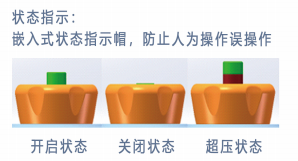 当用户使用时,内嵌式状态指示帽的设计能清晰的指示出当前的管道状态,防止人为误操作导致的异常关闭;当异常关闭时,根据说明书及阀体提示,提起拉环即可复位,操作简单。